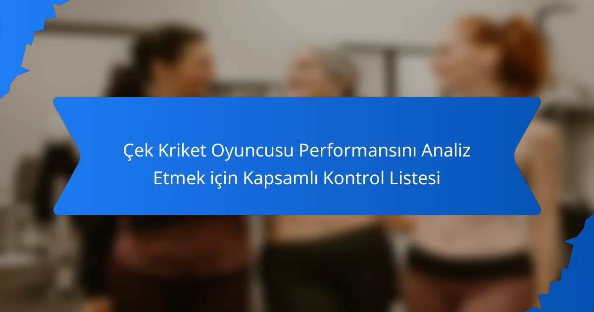 Çek kriket oyuncularının performansını analiz etmek, sahadaki katkılarını vurgulayan temel metriklerin kapsamlı bir kontrol listesini gerektirir. Vuruş ortalamaları, bowling ekonomi oranları ve saha istatistiklerini inceleyerek, bireysel oyuncu etkinliği ve genel takım dinamikleri hakkında değerli bilgiler elde edilebilir. Bu yaklaşım, yalnızca performans tutarlılığını değerlendirmekle kalmaz, aynı zamanda spordaki gelişim ve iyileştirme alanlarını belirlemeye de yardımcı olur.