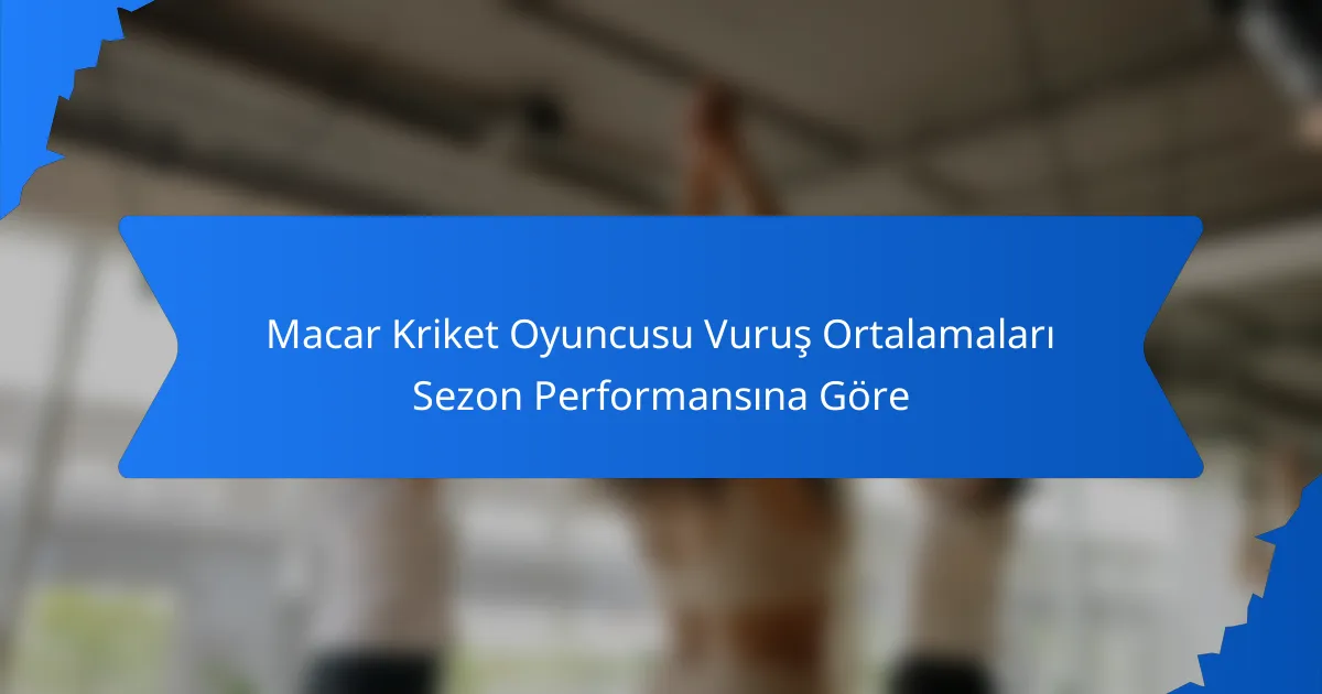 Macar kriket oyuncularının vurma ortalamaları, yıllar boyunca bireysel ve takım performanslarını yansıtarak sezonlara göre değişiklik göstermektedir. Bu ortalamalar, bir oyuncunun maçlardaki tutarlılığının ve etkinliğinin önemli bir göstergesi olarak hizmet etmektedir.