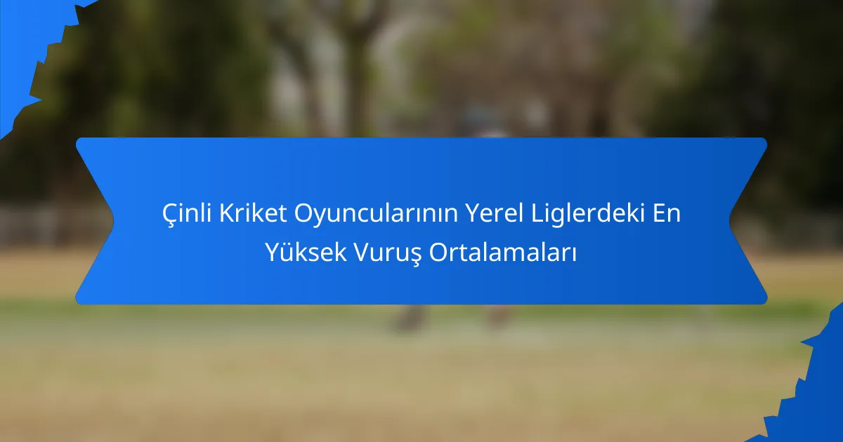 Yerel liglerde en yüksek vurma ortalamalarına sahip Çinli kriket oyuncuları genellikle olağanüstü beceriler ve tutarlılık sergilemektedir. Bu ortalamalar, birçok sezon boyunca gösterdikleri performansı yansıtarak, takımlarına ve sporun Çin’deki büyümesine katkılarını vurgulamaktadır.