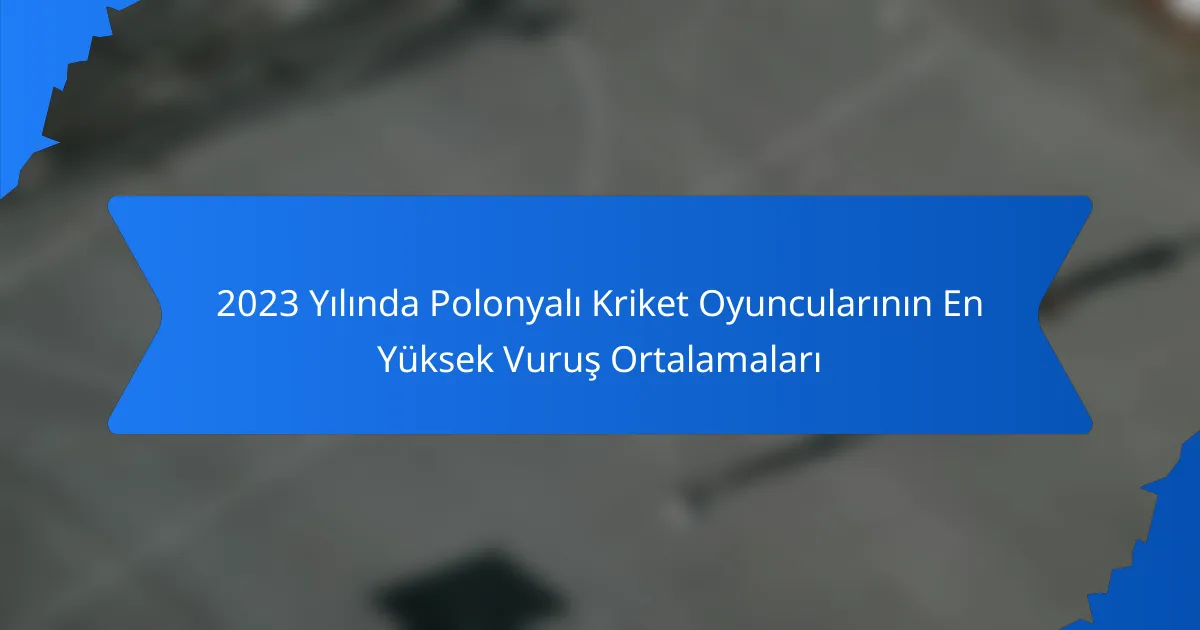 2023 yılında en yüksek vurma ortalamalarına sahip Polonyalı kriket oyuncuları, deneyimli veteranlar ve gelişen yeteneklerin bir karışımını içermektedir. Bu oyuncular sürekli olarak koşu yapmış, genellikle 30’un üzerinde ortalamalar tutmuş ve bazıları 40’ların üstüne çıkmıştır. Performansları, çeşitli maçlarda kritik olmuş ve Polonyalı kriketin genel standartlarını yükseltmiştir.